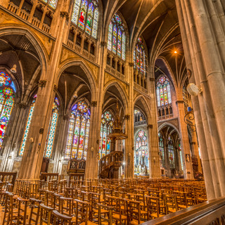 Plage Maginot, le temple ouvrait ses portes à l'occasion d'une exposition sur Martin Luther. La première fois qu'il m'est donné de rentrer dans cet endroit. Ancienne église convertie en temple, le pauvre édifice se casse aujourd'hui la figure, nécessitant des structures en fer pour éviter les éboulement. Ce petit bâtiment est très bien conservé malgré tout et je dois avouer que cette sobriété me change des autres bâtiments religieux luxurieux de Nancy. Pour palier à ce manque, je me rend avec mon étoile dans la superbe Basilique Saint Epvre. Enfin réouverte ! Deux ans que j'attend ce moment. Mes souvenirs étaient encore bon, un bâtiment complètement immense. Un grand moment de contemplation