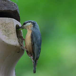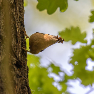 Tout au bout, sur un immense arbre, une nichoir a été installé et une famille de sitelle torchepot y élève ses petits. Un ballet incessant des parents me permet de les immortaliser.