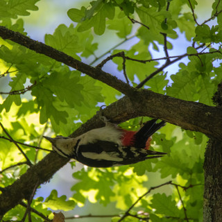 Bonus de la journée : un pic épeiche qui apparait juste au dessus du nichoir en l'espace de quelque secondes, le temps pour moi de me jeter sur le dos et de focuser sur ce merveilleux oiseau.